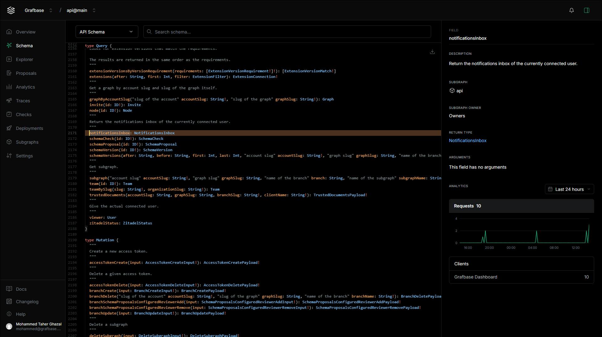 Contains various advanced features including: an IDE-like schema explorer, a graphql queries runner & debugger, detailed traces filtering, multiple analytics pages, an on-page AI assistant, Commands menu, ...etc.